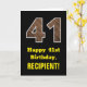 41st Birthday: Name, Faux Wood Grain Pattern "41" Card