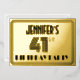 The front of this 1920s/1930s style inspired forty-first birthday celebration foil invitation card design features a custom name, a fancy art deco style inspired number “41st”, the message “BIRTHDAY PARTY”, and a multi-line border. The back features personalized details about the event, such as the date, time, venue, and any other information that may be important. Stylish, luxurious, customized invitations like these might be used to invite attendees to a birthday gathering/party being held to honour somebody’s 41st birthday. [~Z0000594]
