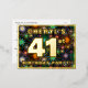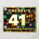 The front of this bold and eye-catching forty-first birthday celebration foil invitation postcard design features a custom name, a large number “41st”, the message “BIRTHDAY PARTY!”, and a border. The background of the front has a joyful, colourful pattern that resembles bursting celebratory fireworks. The back features personalized details about the event, such as the date, time, place, and any other relevant information. Customized invitations like these might be a fun way to let guests know about a birthday party/gathering being held in celebration of somebody’s 41st birthday. [~Z0000609]