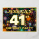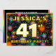 The front of this upbeat and bold forty-first birthday celebration/party foil invitation card design features an editable name, a large number “41st”, the message “BIRTHDAY PARTY!”, and a border. The background of the front has a joyful, multicolored pattern inspired by bursting celebratory fireworks. The back features personalized details about the event, such as the date, time, venue/location, and any other relevant information. Customized invitations like these might be a fun way to invite attendees to a birthday gathering being held to celebrate somebody’s 41st birthday. [~Z0000602]