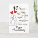 Carte Anniversaire Inside : Je t'aime plus que les mots ne peuvent dire. Chaque jour, pour toujours et un jour. Joyeux anniversaire Description : Célébrez leur 42e anniversaire avec cette carte d'anniversaire exquise. En toile de fond, un grand coeur doré occupe le devant de la scène, dégageant une touche d'élégance défraîchie. Au sommet de la carte, "42 ans" est délicatement inscrit, capturant l'essence de leur lien durable. Sous elle, le message sincère "Joyeux Anniversaire" exprime chaleur et joie. Pour symboliser leur amour, deux personnages adorables en bâton gracient la carte, chacun tenant un coeur rouge vif. Ces coeurs s'entrelacent, formant une belle représentation de leurs coeurs entrelacés et de leur connexion incassable. Pour témoigner de leur voyage, la carte présente fièrement le nombre précis d'années, de mois, de jours, d'heures et de minutes qu'ils ont chéri ensemble. Cette carte méticuleusement fabriquée est un hommage parfait à leur remarquable voyage, en l'honneur de leurs 42 ans d'amour et d'engagement.