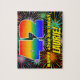 This fun and joyful birthday-themed jigsaw puzzle design features a large number “42” with a multicolored rainbow spectrum inspired gradient pattern, along with the message “HAPPY 42nd BIRTHDAY,”, and a customizable recipient name. The background features a vibrant, colourful pattern that resembles bursting celebratory fireworks. An exciting, customizable birthday puzzle like this might be a fun way to send some birthday wishes to somebody who is celebrating their forty-second birthday. [~Z0000605]