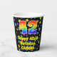 This joyful and colourful birthday paper cup design features a large number “42” having a rainbow spectrum gradient inspired pattern. It also features the message “Happy 42nd Birthday,”, and a personalized name. The background features a multicolored pattern inspired by a field of stars. Colourful, vibrant paper cups like this might be fun to use at a birthday celebration being held to honour somebody’s 42nd birthday. [~Z0000540]