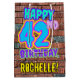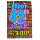 The front of this fun birthday gift bag design features the message “HAPPY 42ND BIRTHDAY,” having a vibrant, colourful, graffiti and urban street art inspired look, plus a customizable recipient name. The background features a pattern inspired by the look of a brick wall. A giftbag like this might be used when wrapping gifts being given to somebody in celebration of their forty second birthday. [~Z0000536]