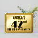 The front of this 1920s/1930s style inspired and elegant forty-second birthday party foil invitation features a customizable name, a large art deco look inspired number “42nd”, the message “BIRTHDAY PARTY”, and a border pattern consisting of lines. The back features personalized details about the event, such as the date, time, venue, and any other important information. Luxurious, stylish, customized invitations like these might be used to invite guests to a birthday party/gathering being held to honour somebody’s 42nd birthday. [~Z0000592]