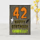 The front of this scary and spooky Hallowe'en birthday themed greeting card design features a large number "42" and the message "HAPPY BIRTHDAY,", plus a personalized name. There are also depictions of a bat and a ghost on the front. The inside features a customized birthday greeting message, or could perhaps be cleared and left blank if a message is to be written by hand instead. A personalized birthday card like this might be a fun way to send a message in celebration of somebody’s forty second birthday that also falls on Halloween (October 31st). [~Z0000410]