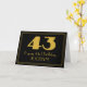 This 1920s/1930s era style inspired and vintage appearance birthday greeting card design features a large art deco look inspired number "43", the message "Happy 43rd Birthday,", a personalized name, and a border pattern consisting of thin lines on the front. The background of the front is coloured black. The inside has a customized birthday greeting message, or could perhaps be cleared and left blank if a message is to be written by hand instead. A customizable birthday greeting card like this might be sent to celebrate somebody’s forty-third birthday. [~Z0000498]