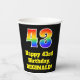 This colourful and fun birthday-themed paper cup design features a large number “43” with a rainbow spectrum gradient inspired pattern, along with the message “Happy 43rd Birthday,”, and a customizable name. It also has a black-coloured background. Vibrant, colourful paper cups like this might be fun to have at a birthday celebration/party being held to celebrate somebody’s 43rd birthday. [~Z0000537]