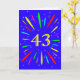 An explosive 43rd birthday card! What a wonderful way to send birthday greetings. The number 43 in bright yellow with an explosion of bright colours and stars.