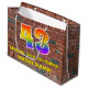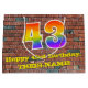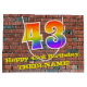 This colourful and fun birthday gift bag design, inspired by graffiti and street art, features a large number "43" with a rainbow spectrum gradient inspired pattern, along with the message "Happy 43rd Birthday,", and a custom name. It also has a brick wall inspired pattern background. A vibrant giftbag like this might be used when wrapping presents being given to somebody in celebration of their forty third birthday. [~Z0000522]