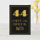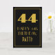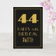 The front of this vintage appearance birthday greeting card design features a large art deco look inspired number "44", the message "HAPPY 44th BIRTHDAY,", an editable name, and a border pattern consisting of lines. There is a black-coloured background on the front. The inside features a custom birthday greeting message, or could perhaps be cleared and left blank if a message is to be written by hand instead. A customizable birthday card like this might be a fun way to send a message in celebration of somebody’s forty fourth birthday. [~Z0000502]