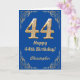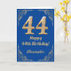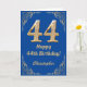 44th Birthday Blue and Gold Glitter Frame Card