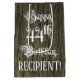 This elegant and lavish birthday-themed gift bag design features the message “Happy 44th Birthday,” in fancy script style text, on a faux wood look pattern background. It also features a personalized recipient name. A gift bag like this might be a respectable way of wrapping a birthday present or gift being given to somebody who is celebrating their 44th birthday. [~Z0000558]