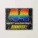 This joyful and colourful birthday jigsaw puzzle design features a large number “44” having a multicolored rainbow spectrum inspired gradient pattern. It also features the message “HAPPY 44th BIRTHDAY,”, and a custom recipient name. The background has an upbeat, multicolored pattern featuring star shapes of various sizes. An exciting, customizable birthday puzzle like this might be used to celebrate somebody’s forty-fourth birthday. [~Z0000607]