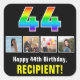 44th Birthday: Rainbow “44”; Custom Photos & Name Square Sticker