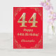 44th Birthday Red and Gold Glitter Frame. For further customization, please click the "Customize it" button and use our design tool to modify this template.