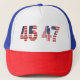 Support Donald Trump in the 2024 election with this stylish trucker hat featuring the bold '45 47' design! Show your patriotic spirit with this eye-catching hat that highlights Trump's 45th and potential 47th presidency, adorned with the American flag. Perfect for rallies, political events, or everyday wear, this high-quality hat makes a statement and keeps you comfortable.