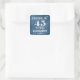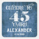 45th birthday favour tag stickers, featuring rustic blue linen burlap charm with chalkboard letters in white and personalized with name and date below.
