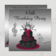 Womens' glamourous black, silver and hot pink 45th / 45 years old birthday party celebration invitations with woman's silver printed rhinestones jewels high heels stiletto shoes images with sparkles, a beautiful ornate hot pink and black girly diva cake with funky silver disco retro mirror ball, flowers, bling diamonds and chic corset tie and pretty printed silver rhinestones glitter musical note on a sophisticated silver gradient background. These elegant funky fashion invites for her are decorated both sides. Trendy, cool and classy modern fashionable glamour invites, perfect for dinner and dancing parties. PLEASE NOTE: All products on Zazzle have flat printed images - not real jewels or sparkles. If you need assistance customizing your product please contact me through my store and I will be happy to help.
