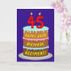 This upbeat and cheerful birthday greeting card design features a depiction of a three-tier birthday cake having numeral-shaped candles on top showing the number “45“, along with the message “HAPPY 45TH BIRTHDAY,”, and an editable recipient name. The inside features a custom birthday greeting message, or could perhaps be cleared and left blank if a message is to be written by hand instead. A fun, editable birthday greeting card like this might be a fun way to send some birthday wishes to somebody who is celebrating their forty-fifth birthday. [~Z0000620]