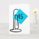 An aqua reminder note on a giant black paper clip on white for a 45th birthday.