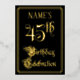 The front of this opulent, ornate, foil forty-fifth birthday celebration/party invitation design features the message “45th Birthday Celebration” in luxurious script-style text. It also features an editable name. The background of the front is coloured black by default (although it can be customized to a different colour). The back features personalized details about the event, such as the date, time, location, and any other relevant information. Fancy, elegant, personalized invitations like these might be used to invite guests to a birthday celebration being held to celebrate somebody’s forty fifth birthday. [~Z0000589]