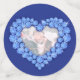 45th sapphire wedding anniversary party heart and photo confetti. Personalize with your own choice of 3 photos. 45th-anniversary blue sapphire heart invitations and other matching anniversary party items are available. © Original design by Sarah Trett for www.mylittleeden.com
