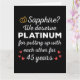 'Sapphire? We deserve Platinum for putting up with each other for 45 Years' quote for a couple who got married 45 years ago or a couple renewing wedding vows on their sapphire anniversary.