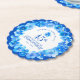 Blue floral sapphire wedding anniversary paper coasters. Personalize these anniversary coasters with your own couples names and marriage dates. Other matching items are also available. © Original watercolor pansy hand painting and design by Sarah Trett for www.mylittleeden.com and www.mylittleedenweddings.com on Zazzle.