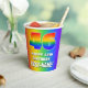 This vibrant and exciting birthday themed paper cup design features a large number “46” with a colourful rainbow spectrum inspired gradient pattern, along with the message “HAPPY 46th BIRTHDAY,”, and a custom name. The background also features a fun multicolored rainbow spectrum inspired gradient pattern. Paper cups like this might be used at a party held in celebration of somebody’s forty sixth birthday. [~Z0000576]