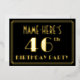 The front of this vintage-look and Roaring Twenties inspired forty-sixth birthday party/celebration foil invitation features a personalized name, a large art deco style inspired number “46th”, the message “BIRTHDAY PARTY”, and a border pattern consisting of lines. The front also features a black-coloured background by default, but it can be customized to a different colour if desired. The back features personalized details about the event, such as the date, time, venue, and any other important information. Elegant, luxurious, editable invitations like these might be used to invite guests to a birthday party/gathering being held to honour somebody’s 46th birthday. [~Z0000591]