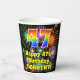This cheerful and fun birthday-themed paper cup design features a large number “47” having a rainbow spectrum gradient inspired pattern. It also features the message “Happy 47th Birthday,”, and a customizable name. The background features a colourful pattern inspired by the look of bursting celebratory fireworks. Vibrant, colourful paper cups like this might be fun to use at a birthday celebration/party being held to honour somebody’s forty seventh birthday. [~Z0000539]