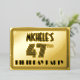The front of this 1920s-1930s style inspired forty-seventh birthday party foil invitation card design features a personalized name, a fancy art deco look inspired number “47th”, the message “BIRTHDAY PARTY”, and a border pattern consisting of lines. The back features personalized details about the event, such as the date, time, location, and any other important information. Luxurious, stylish, editable invitations like these might be used to invite guests/attendees to a birthday gathering being held in celebration of somebody’s 47th birthday. [~Z0000594]