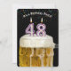 Number 48 candles in mug of beer with colourful confetti on black for 48th birthday party invite.