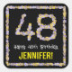 This floral, botany-inspired birthday themed square sticker design features the message “Happy 48th Birthday,” along with a customizable recipient name. The large number “48” and the border both feature flower icons. Fun birthday themed stickers like these might be used or distributed at a party for somebody who is celebrating their forty-eighth birthday, or perhaps used when preparing invitations or gifts/presents for such an event. [~Z0000652]