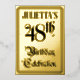 The front of this ornate forty-eighth birthday party/celebration foil invitation/announcement card design features the message “48th Birthday Celebration” in elaborate script-style text. It also features a custom name. The back features personalized details about the event, such as the date, time, location, and any other information that may be important. Elaborate, fancy, customized invitations like these might be used to invite guests to a birthday celebration being held in celebration of somebody’s 48th birthday. [~Z0000596]
