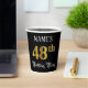 This opulent and ornate birthday themed paper cup design features a customizable name and the message “48th Birthday Party”. The large number “48th” has an imitation/faux gold-inspired colouring pattern, and the words “Birthday Party” are in fancy script-style text. The background is coloured black by default (although it can be customized). Elegant, fancy paper cups like this might be useful to have at a birthday party being held in celebration of somebody’s forty eighth birthday. [~Z0000567]