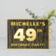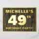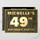 The front of this bold forty-ninth birthday party/celebration foil invitation card features a custom name, a large number “49th”, the message “BIRTHDAY PARTY!”, and a border, all in foil. There is a rustic, yet sophisticated, faux wood grain appearance inspired pattern for the background of the front. The back features personalized details about the event, such as the date, time, venue/place, and any other information that may be important. Customized invitations like these might be used to invite guests to a birthday party being held in celebration of somebody’s 49th birthday. [~Z0000598]