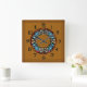 The crowning glory to this wall clock is the original digital painting of a Craftsman style mosaic in which the 'tiles' have the appearance of natural stones & minerals featuring a ring of 4 blue birds around a central medallion that's set into a honey maple board w/ routed borders. Numerals appear to be routed & touched w/ black stain.