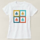 A graphic illustration of 4 christmas trees, tiled in a poster style. Retro colours - yellow. orange, blue and green. Cute and festive.