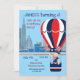 Invitation tes invités à la fête d'anniversaire du 4 juillet de ton garçon avec cette jolie illustration originale ! Il est lumineux plein et coloré ! Cette invitation de fête d'anniversaire de l'Indépendance est facilement customisée pour votre événement en ajoutant vos détails. A l'avant, il y a un garçon avec un drapeau américain. Il profite d'un tour en montgolfière. Il porte un t-shirt avec étoiles et rayures. Une étoile rouge, blanche et bleue se trouve au fond de cette invitation. Idéal pour un petit garçon né à cette date historique et une fête sur le thème du 4 juillet.