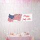 Cette bannière de vacances du 4 Juillet est présentée dans le style intérieur, Select de intérieur ou extérieur, avec ou sans grommets. Montré dans un imprimé patriotique USA Flag avec le texte du 4 juillet en rouge Happy. Customisez ou achetez comme prévu. Image stock