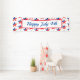 Cette bannière de vacances du 4 Juillet est présentée dans le style intérieur, Select de intérieur ou extérieur, avec ou sans grommets. Montré dans un drapeau patriotique étoiles imprimé avec le texte du 4 juillet heureux en bleu. Customisez ou achetez comme prévu. Image stock