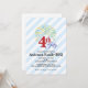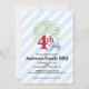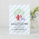 Cette invitation du 4 juillet, accolée à la ronde, présente une explosion colorée de feux d'artifice sur un arrière - plan rayé bleu clair et blanc en diagonale. Le texte personnalisé vous permet d'ajouter les détails de votre invitation de célébration du 4 juillet.