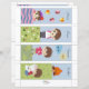 4 Kawaii Camping Friends editable bookmarks with cut-out lines. You can edit the names by clicking on "personalize this template - details". The print is on both sides of the page.