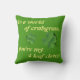 One side of this pillow has a field of grass with one 4 leaf clover, the other side is a soft green with a couple of soft 4 leaf clovers and in soft yellow text it says "In a world of crabgrass, you're my 4 leaf clover!"