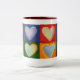 "Quatre Coeurs d'Amour". Peinture de quatre coeurs blancs dans des rectangles rouges, bleus, verts et jaunes qui se croisent tous comme l'amour de sources multiples se rassemblent mais aussi être séparés. Les liens du coeur de l'amour nous rassemblent dans la joie et les célébrations. C'est aussi de l'amour pour renforcer nos âmes pour les défis de la vie. Vous pouvez personnaliser ces tasses à café coeur inspirant avec votre propre message et images en utilisant l'option "Customiser". Fait pour un grand amour des cadeaux de tasse de café! Les bénéfices de cette vente soutiennent l'association à but non lucratif 501(c)3 DonnaBellas Angels qui est une association à but non lucratif dont la mission est de fournir au public un art inspirant sur le thème de la guérison. Pour en savoir plus, consultez le site donnabellasangels.org.