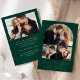 This simple, minimalist Save the Date card features a 3-photo collage arch above the words "Save the Date" in elegant real gold foil handwriting script, followed by the couple's names, wedding date and city in sans serif font on an emerald green background. Add a fourth, horizontal photo and a more detailed message with additional information on the back.