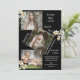 Personalized 4 photo collage graduation party announcement with chic black background. Accented with sweet watercolor white daisies. Simple and sweet. Add your special photos to create your own personal announcement. Other colours and styles available.