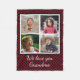 An unique photo collage fleece blanket gift, for the holiday season, personalized for grandma with 4 pictures of the grandkids.